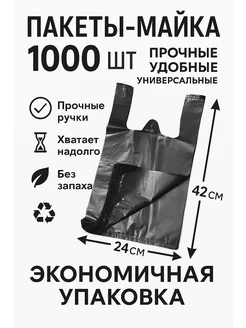 Пакет майка фасовочный с ручками черный 24х42 1000шт
