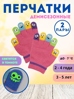 Перчатки детские светящиеся демисезон розовые, 2 пары