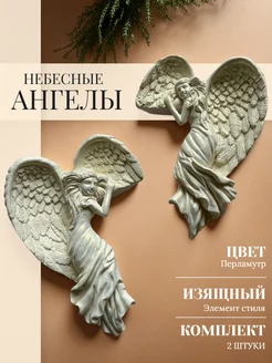 Ангел декор на дверь панно на стену, зеркало 2 шт перламутр