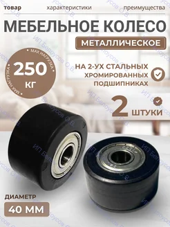 Колесо мебельное на двух подшипниках 2 шт 40 мм 20 мм 8 мм