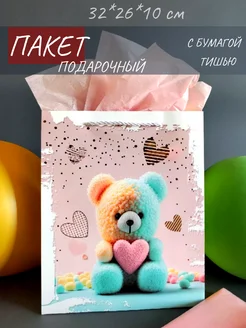 Подарочный пакет большой с бумагой тишью 32х26х13 см