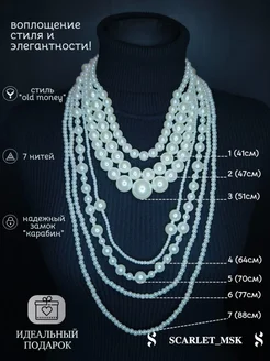 Бусы Жемчуг Длинные Многоярусные 7 Нитей