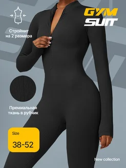 Спортивный комбинезон для фитнеса в рубчик с замком