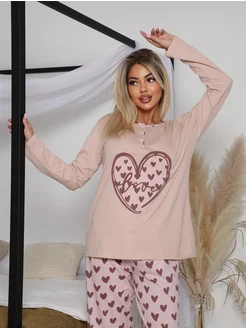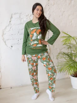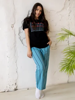 Пижама женская со штанами хлопок трикотаж больших размеров