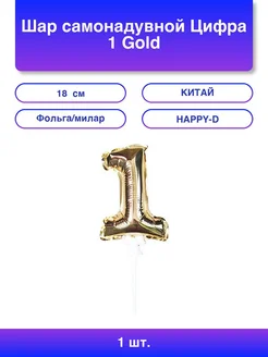 1шт. Шар самонадувной Цифра 1 Gold 18 см