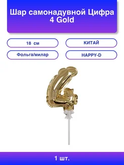 1шт. Шар самонадувной Цифра 4 Gold 18 см