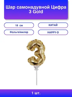 1шт. Шар самонадувной Цифра 3 Gold 18 см