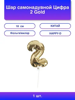 1шт. Шар самонадувной Цифра 2 Gold 18 см