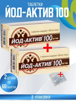 Йод-актив-100, 60 таблеток, 2 упаковки, +салфетка