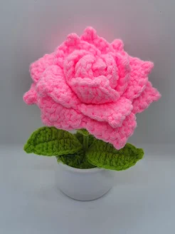 цветок в горшке вязаный подарочный роза