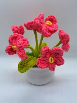вязаный цветок в горшке для дома в подарок фиалка