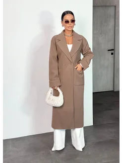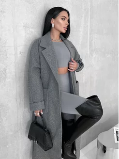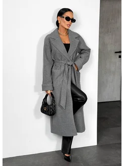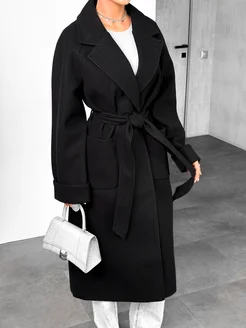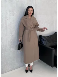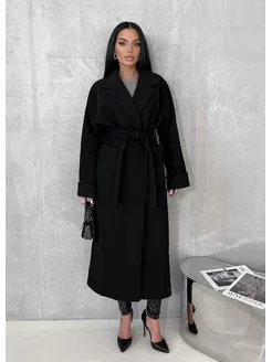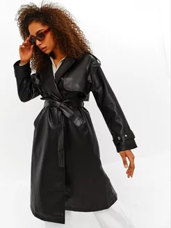 Плащ тренчкот кожаный на оверсайз удлиненный с поясом