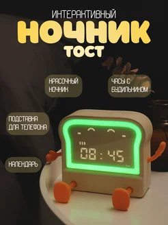 Интерактивный ночник часы с будильником "Тост"