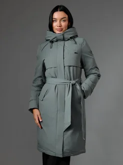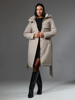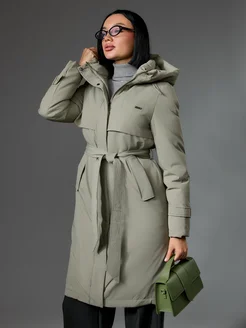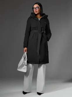 Пуховик зимний длинный с поясом