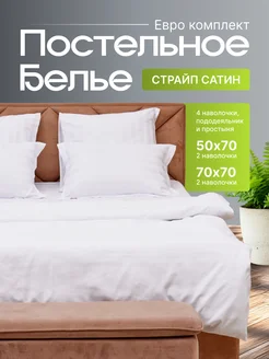 Постельное белье евро белое на резинке