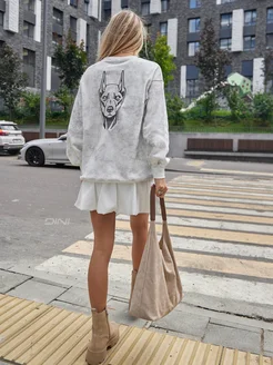 Свитшот удлиненный варенка оверсайз с вышивкой Доберман