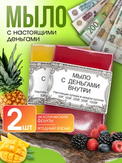 Мыло ручной работы твердое с деньгами внутри набор 2 шт