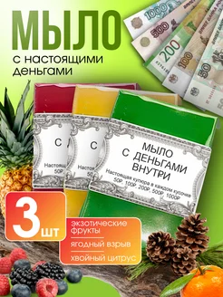 Мыло ручной работы твердое с деньгами внутри набор 3 шт