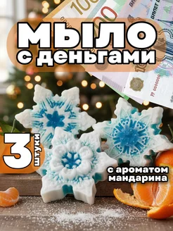 Подарок на новый год мыло денежное Снежинки набор 3шт