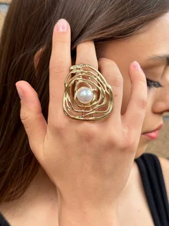 Кольцо объемное женское бижутерия под золото