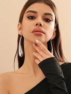 Бижутерия серьги капля под серебро большие