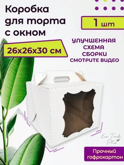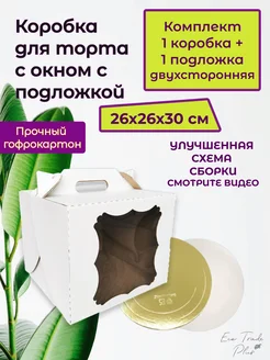 Набор короб для торта с окном 26x26x30 см, 1 шт + подложка