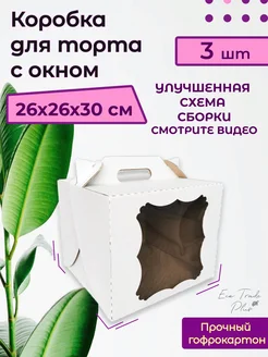 Набор коробов для торта с окном 26x26x30 см, 3 шт