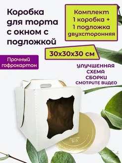 Набор короб для торта с окном 30x30x30 см, 1 шт + подложка