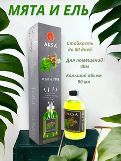 Аромадиффузор для дома Aksa с палочками, Мята и Ель 90 мл