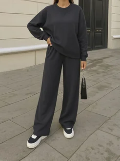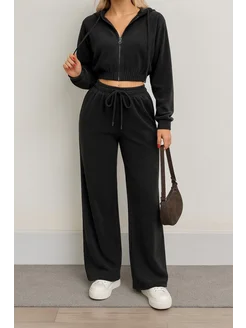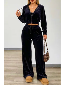 Костюм спортивный велюровый на молнии оверсайз с топом