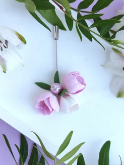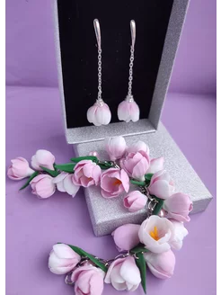 Комплект серьги и браслет цветы из полимерной глины Тюльпаны
