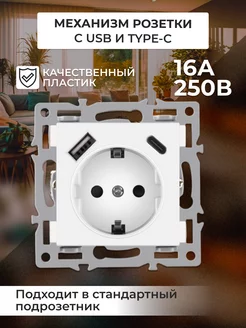 Розетка с usb-входом и type-c для iphone встраиваемая белая