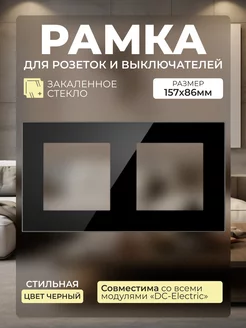 Рамка для розеток и выключателей 2 поста черная стеклянная