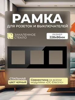 Рамка для розеток и выключателей 3 поста черная стеклянная