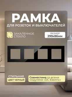 Рамка для розеток и выключателей 4 поста черная стеклянная