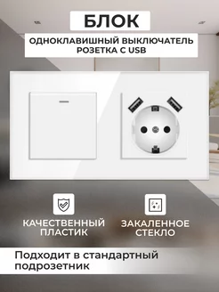 Выключатель одноклавишный белый с розеткой usb и рамкой