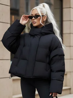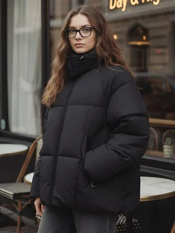 Куртка оверсайз с капюшоном пуховик короткий жилет