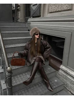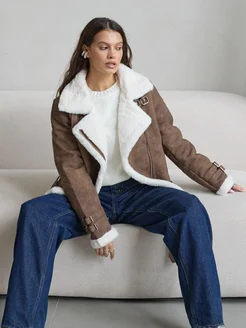 Дубленка авиатор короткая оверсайз зимняя пилот