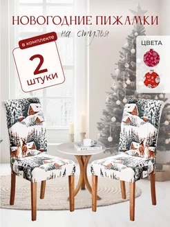 Новогодние чехлы на стулья со спинкой 2 штуки