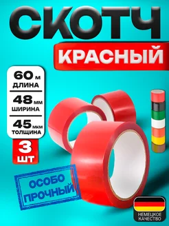 Скотч красный широкий 3 шт - 48мм, 60м
