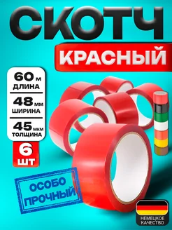 Скотч красный широкий 6 шт - 48мм, 60м