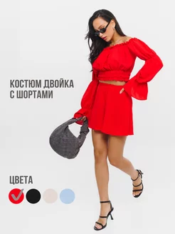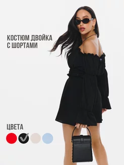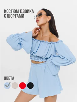 Летний костюм с шортами и открытыми плечами