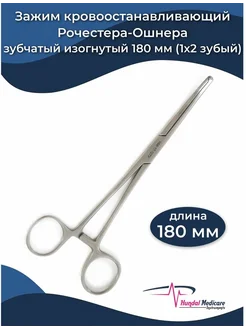 Зажим зубчатый изогнутый Рочестера-Ошнера 180мм (1х2 зубый)