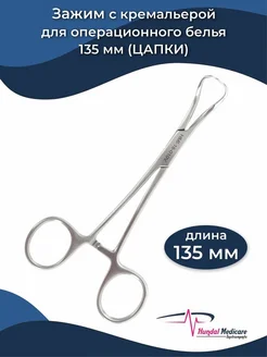 Зажим с кремальерой для операционного белья 135 мм