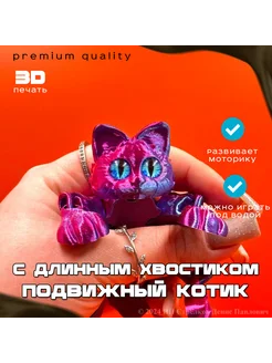 Игрушка кот подвижная 3d антистресс с длинным хвостом 3D