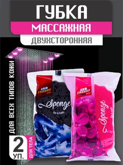 Губка двусторонняя для ванной и душа, Мочалка 2 шт