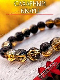 Браслет с натуральным сахарным кварцем Золотисто-чёрный