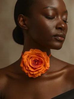 Чокер цветок украшение на шею роза оранжевая