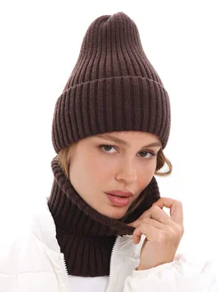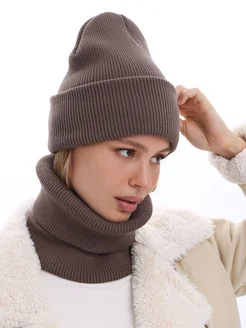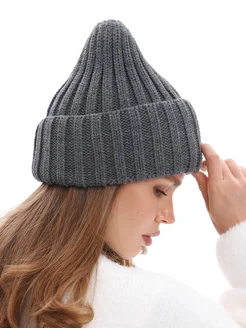 Шапка осенняя-весенняя бини с подворотом вязаная