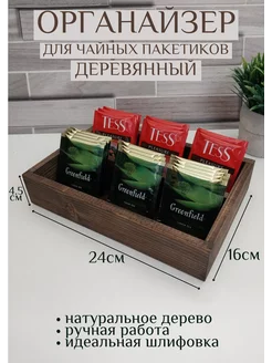 Органайзер для чайных пакетиков деревянный 24х16х4.5см
